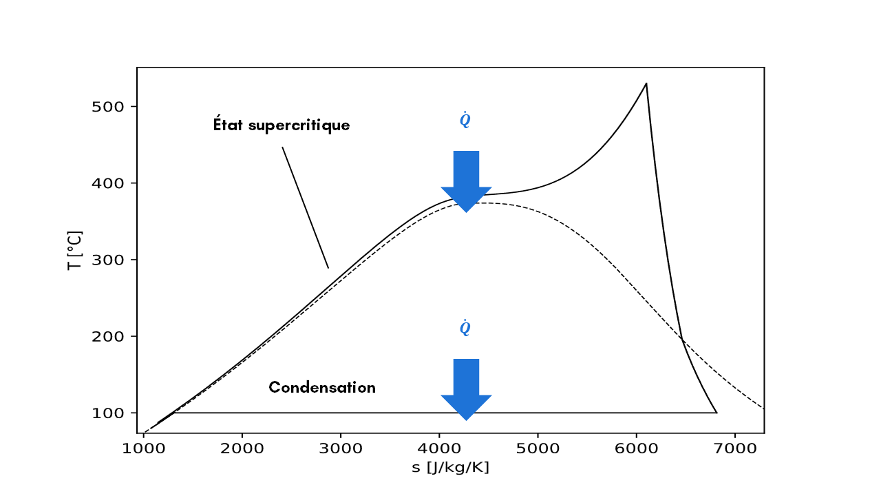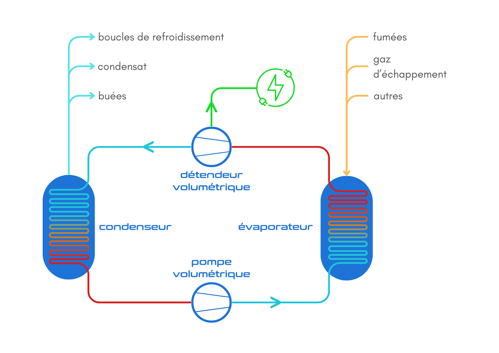Ce cycle tire parti des caractéristiques de nos détendeurs à piston à très fort ratios de détente. La chauffe directe du fluide de travail augmente le rendement de Carnot. La suppression des boucles intermédiaires réduit la quantité d’équipements à déployer.