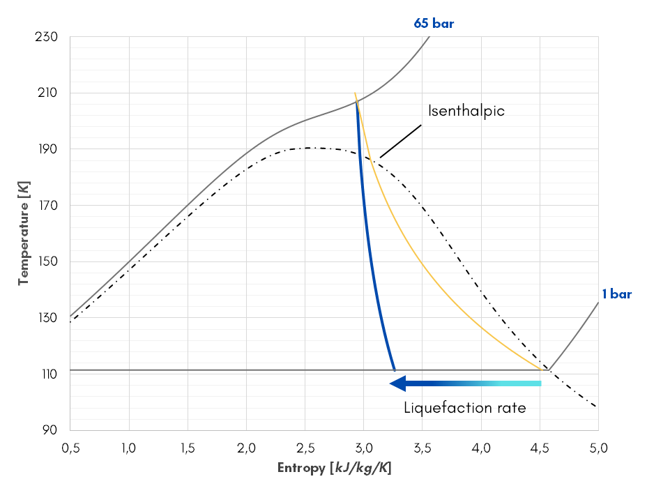 Under equal conditions, the temperature drop and liquefaction rate surpass those of an equivalent expansion valve.