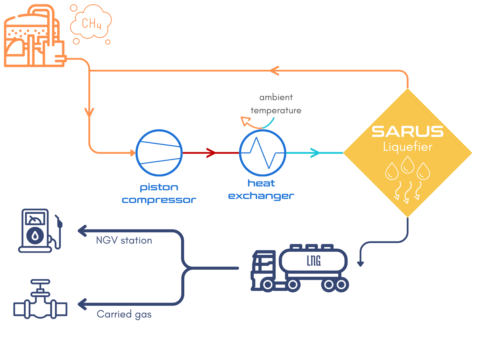 At the outlet of the membranes, after purification, our technology allows for the liquefaction of biomethane without the need for an external supply of liquid nitrogen, without an auxiliary loop, and with an equipment reduction.