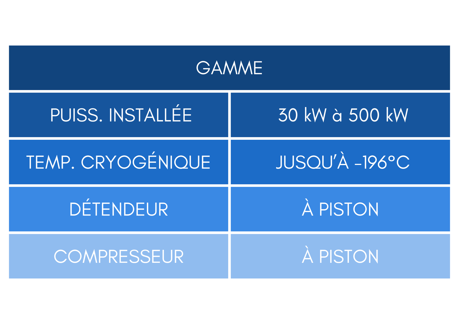Une partie de l’énergie consommée lors de la liquéfaction est restituée par notre détendeur à pistons.