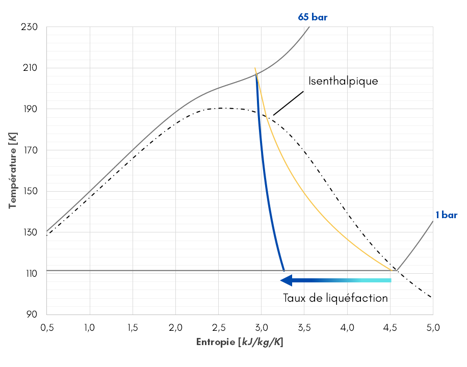 À conditions égales, la chute de température et le taux de liquéfaction sont supérieurs à celui d’une vanne de détente équivalente.